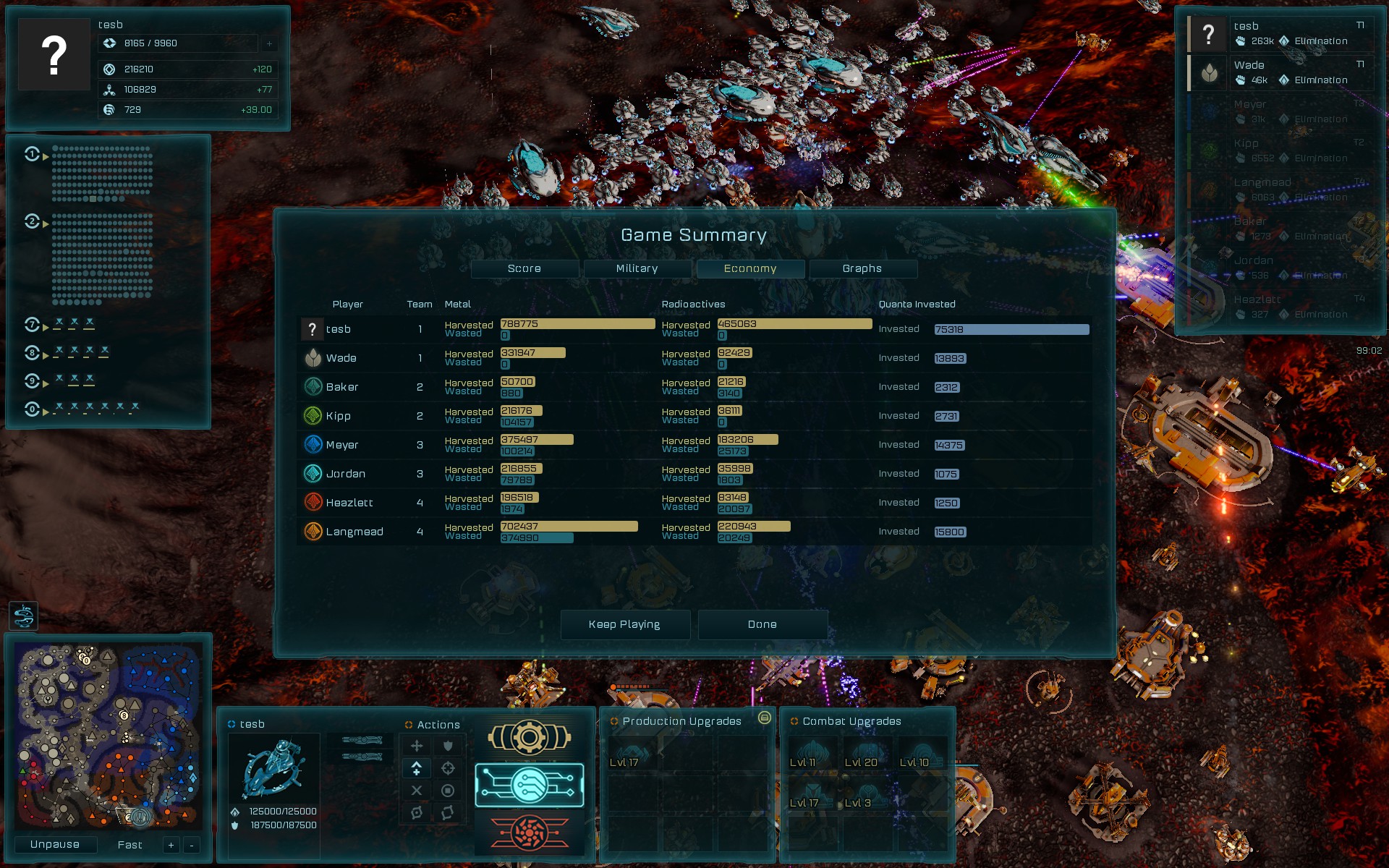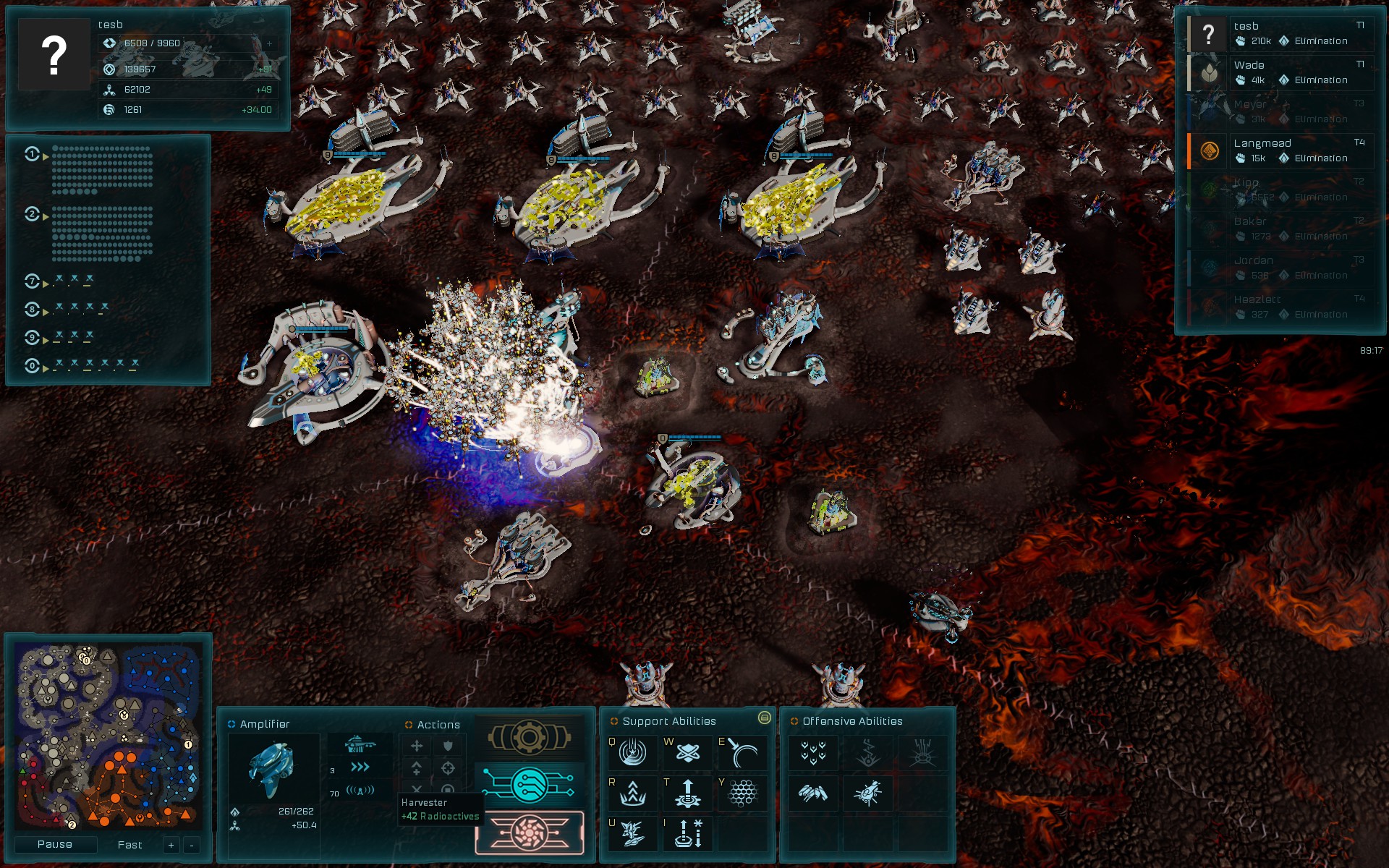 Then there are the tech buildings. Do they actually do something besides unlocking abilities/units? i usually build one of each kind and that is it. Again this could be an opportunity for some base building mechanics, e.g. each armoury could slowly work towards hitpoint upgrades and the more you have the faster it goes (each would consume a certain amount of quanta/sec and you can turn them off if you need more quanta). such a mechanic could replace the current upgrade mechanic which lacks depth (a simple click for a global upgrade). Again you could introduce some minor synergies, e.g. quanta generators in the vicinity could provide a slight boost to foster base building.