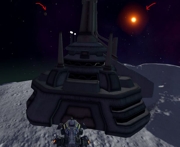 Planets as such look very finished (and shadows coming huh). Very slick and nice. Mechanics and camera work in this build looks quite fine to me. However the view of space from the surface of moon and I suppose other Sol planets is a bit strange. The sun looks too small and too orange from the surface; the other planets look too large and too close - you are not supposed to see them that easily. I propose to keep the views as is in other planetary systems (auto), but for Solar system - if possible make a custom rule for viewing other planets and Sun from surface. We just know our system too well and it looks too obviously-unrealistic. Most of the game doesn't have to be looking realistic but the solar system imho at least should try to. Distances between the gas giant orbits in Sol are a notch too short as well.