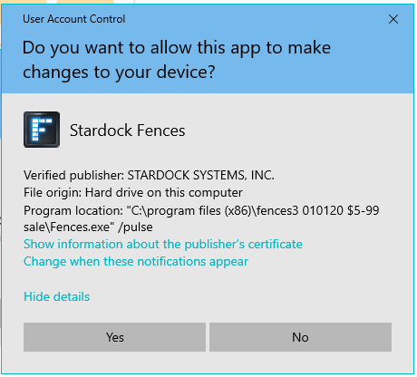 I don't know if you ever got this figured out, but I had the same problems & concerns. I was also happily running Fences4 on my Windows10 computer, but was constantly interrupted with flash screens that I also suspected were attempts to get me to upgrade. My pop-up screens were different — they asked if I wanted Fences to make changes to my computer. I was constantly clicking out of them. If you get a screen like that, click on the More Details button and you'll find there are 4-6 areas they point to. I finally resorted to ChatGPT with the problem and after much back and forth, I seem to have gotten rid of them (and will sleep well tonight knowing that I won't have to deal with it any longer. Who needs more nagging in their life?