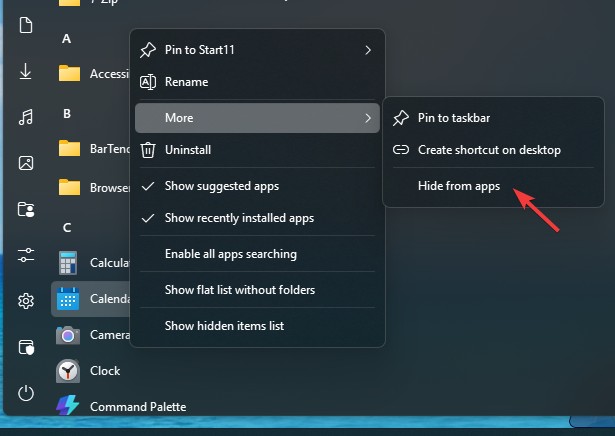 An uninstalled program still appearing in Start11 Menu