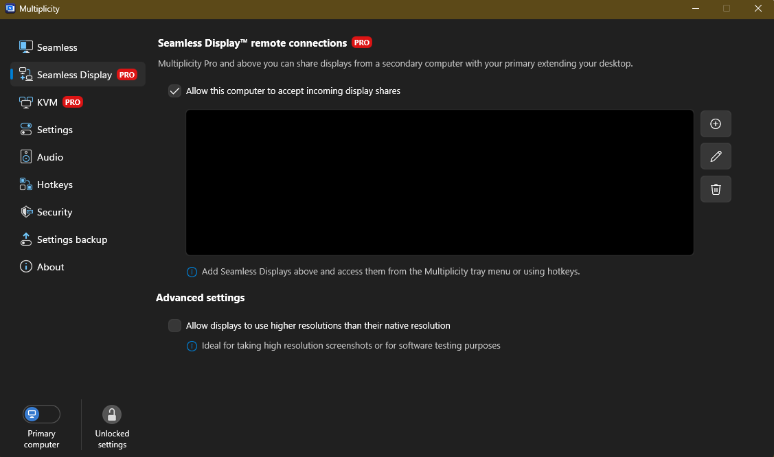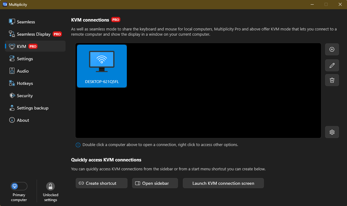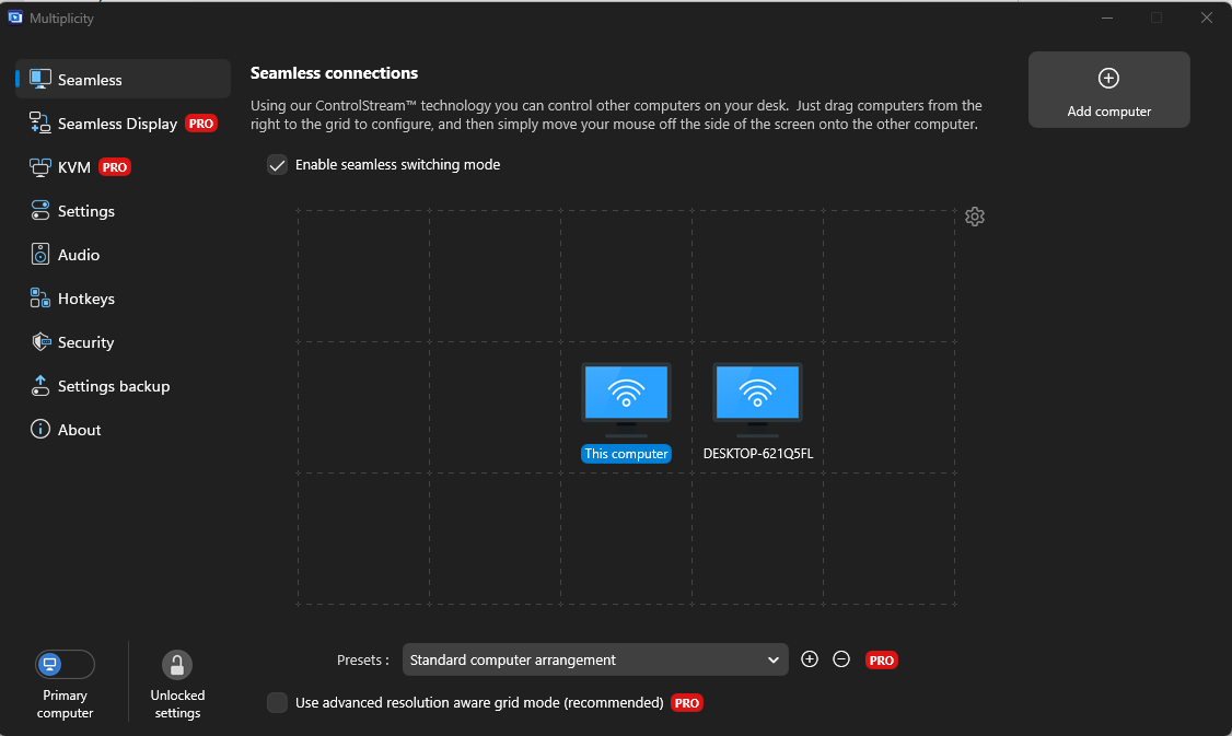 I also have not figured out how to switch back to my primary computer from the secondary computer. I've had to shut down the secondary.