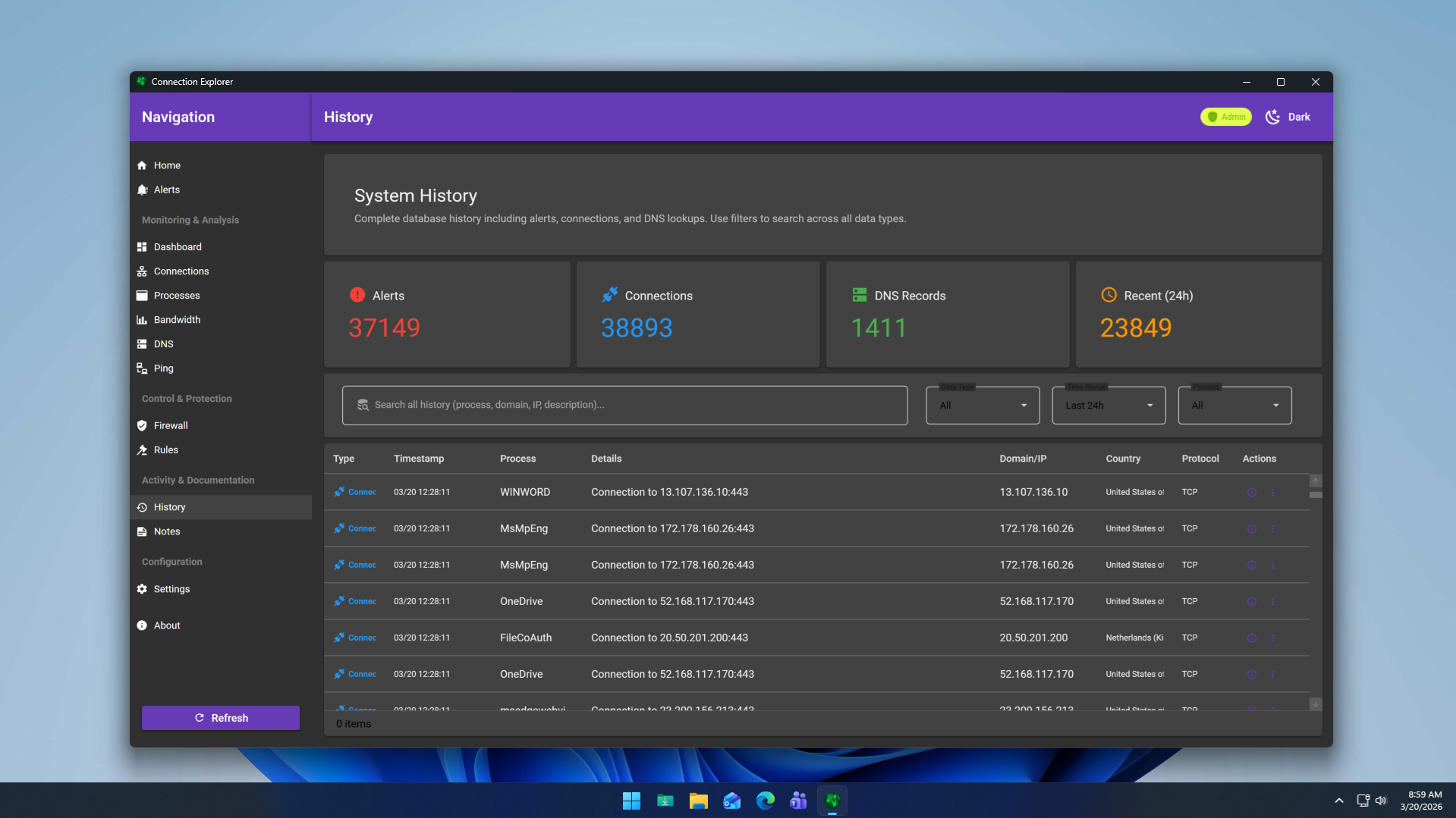 Every day, your PC creates hundreds of connections, but seeing this activity is a convoluted and opaque process. Connection Explorer was built from the ground up for one thing, to create a window of insight into these connections and allow you to see what is happening on your device.