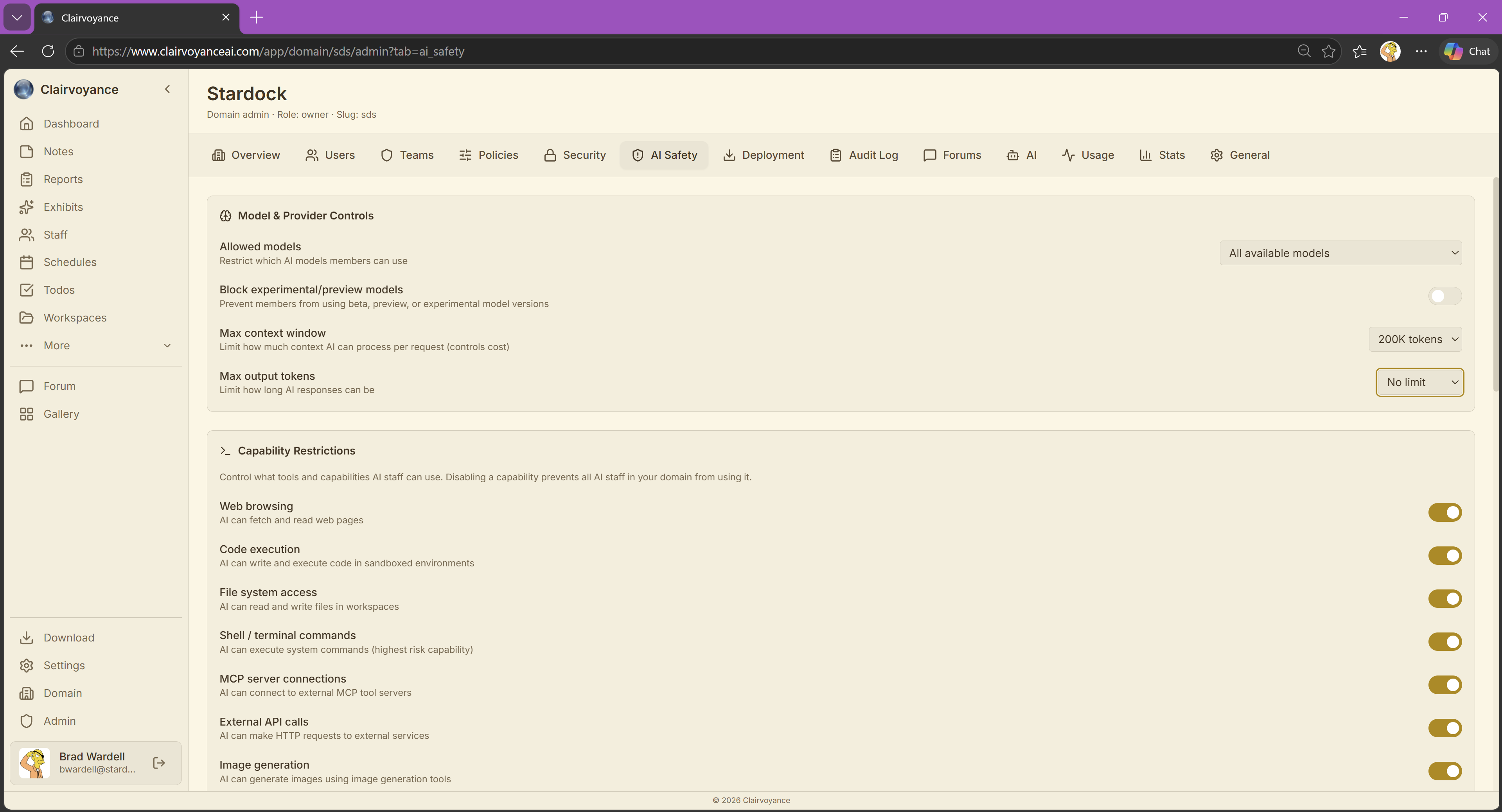 Clairvoyance for the Enterprise. Manage your AI clients, costs, what features can be used, security, safety, usage and more.