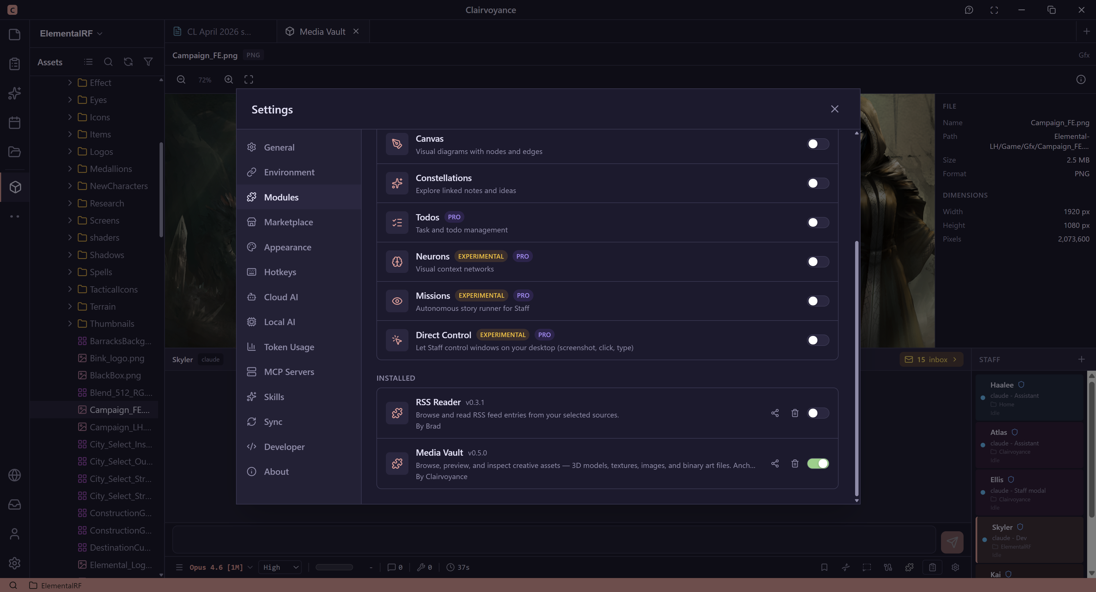 Users can extend Clairvoyance with modules. AI staff automatically know how to use them. No setup required.