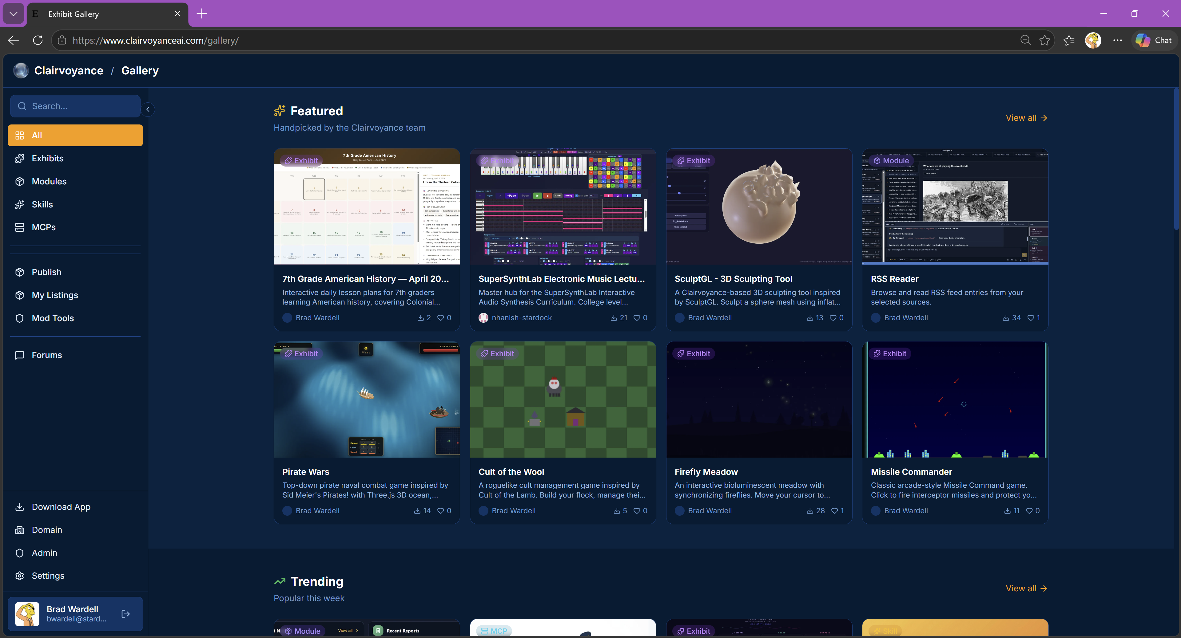 Clairvoyance on the web: A moderated, curated place for people to share their creations: Skills, MCPs, Games, Visualization, Apps, Modules, and more.